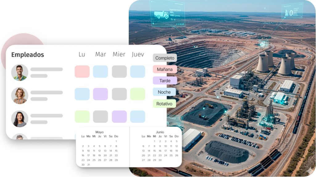 Las operaciones en minería y plantas de energía suelen requerir la gestión de turnos rotativos y el control preciso del personal en zonas remotas.