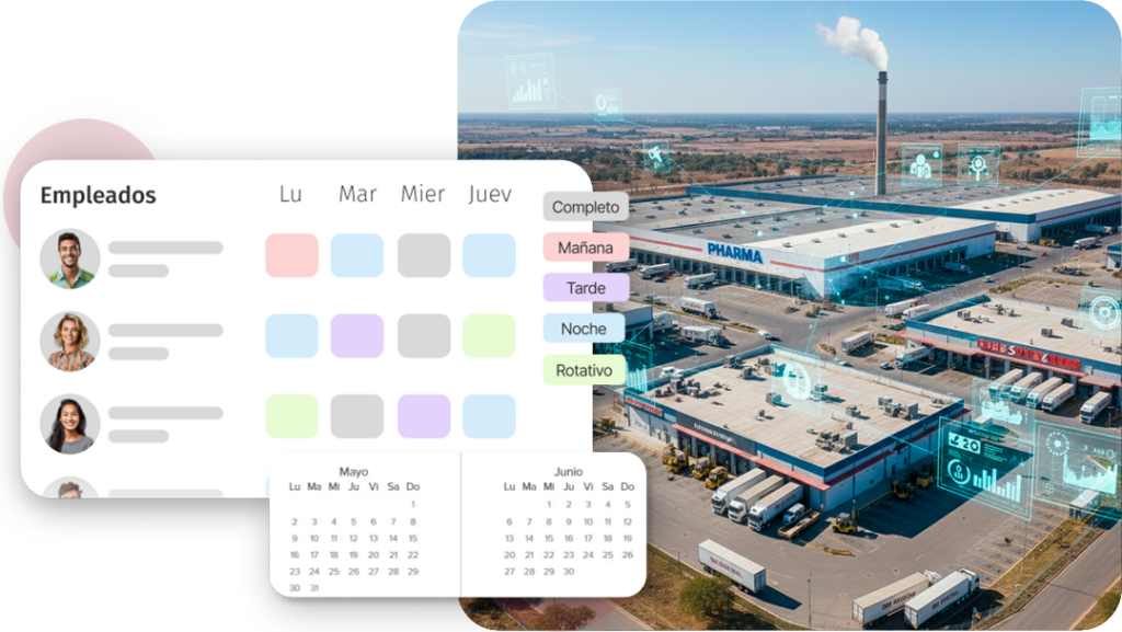 Las plantas farmacéuticas operan con personal en múltiples turnos rotativos que requieren un monitoreo constante para asegurar la continuidad operativa y el cumplimiento de los requisitos de producción.